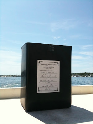 So after my father passed away, we all decided that the most fitting place to spread his remains was in his favorite nautical coordinate, which was the water surrounding Block Island, which is a small body of land between the tip of L.I. and Rhode Island, a pretty little place indeed. I remember my dad saying, jokingly in the past as if Death would never land on his doormat "I wanna be buried at sea!". Now that what was left of him was in a box, we actually had to make the decision to honor that wish.