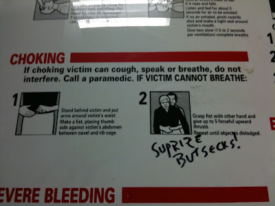 Shot with iphone, click to enlarge. Even at 8am in the morning on a Monday, I still have enough energy to get a good, cathartic laugh out of some jerk's sophomoric humor scrawlings on an emergency diagram.